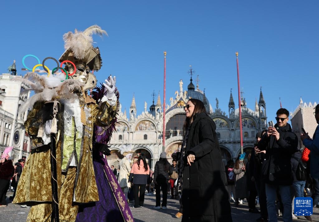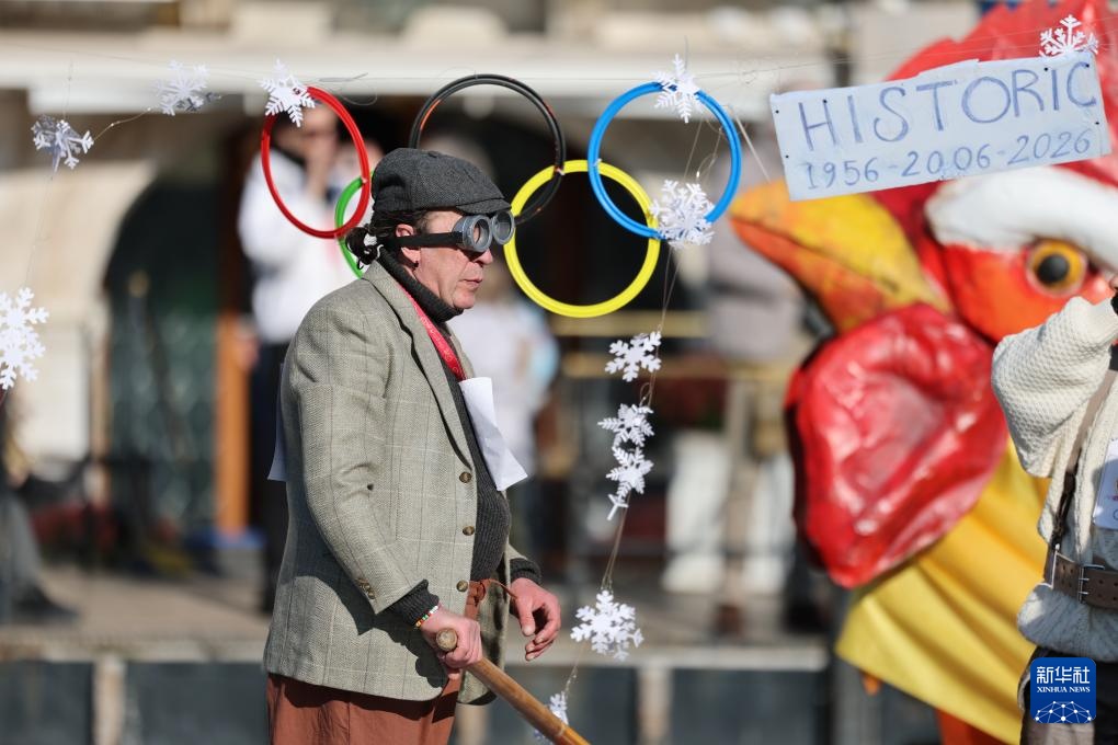 2026年米兰-科尔蒂纳冬奥会即将于2月6日开幕。在意大利威尼斯举办的狂欢节上,许多参与者在装扮中加入奥运元素,热情迎接体育盛会的到来。